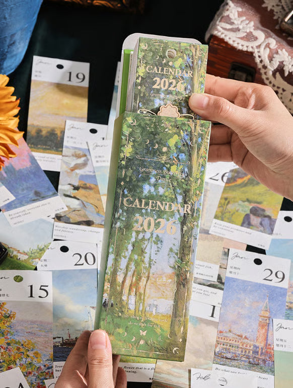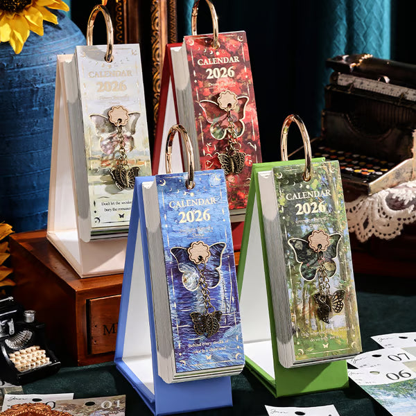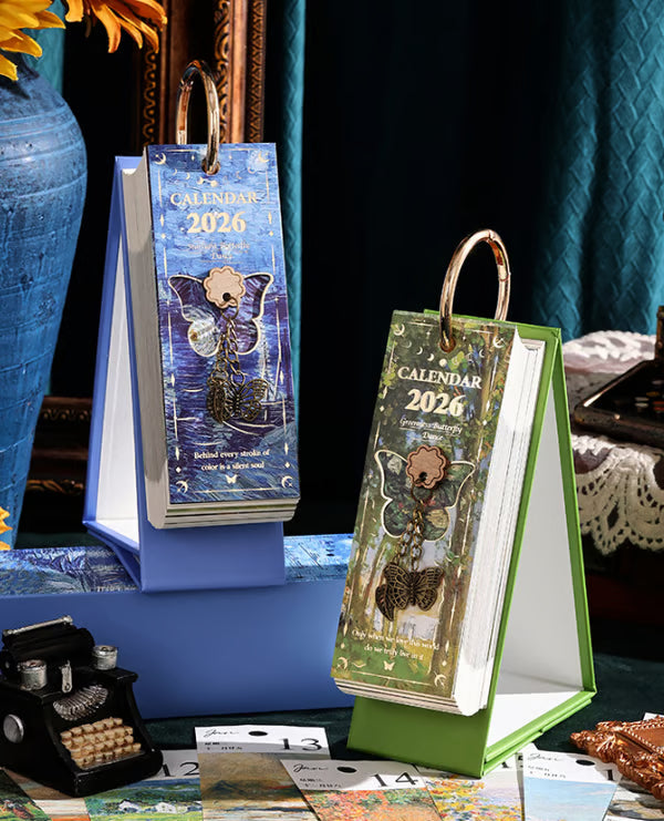 Transformez votre routine quotidienne avec ce calendrier à retourner pour 2026, magnifiquement conçu. Inspiré des peintures à l’huile européennes vintage, il ajoute une touche d’élégance intemporelle à votre bureau ou espace de travail. Chaque page est une œuvre d’art, accompagnée d’un pendentif papillon charmant pour une note supplémentaire de sophistication.