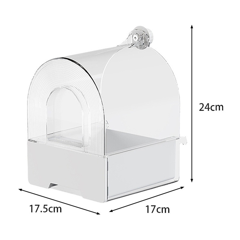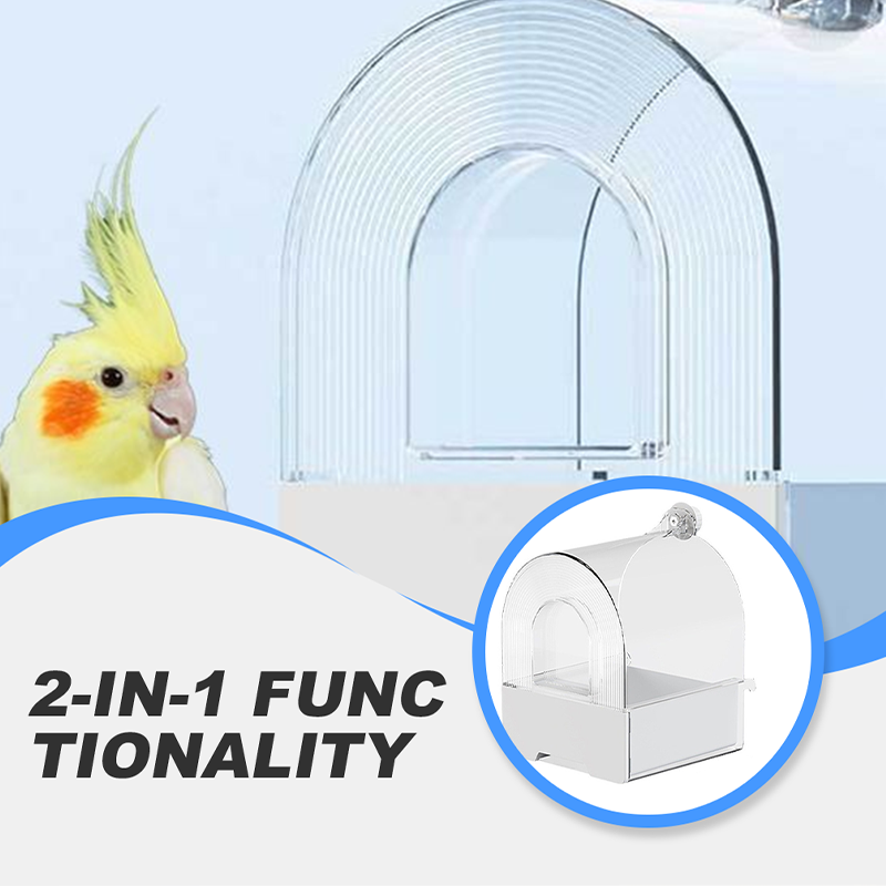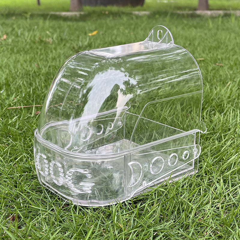VISUALISATION TRANSPARENTE : Le design en acrylique transparent offre une vue dégagée, vous permettant d'observer votre perroquet profiter de son bain. Contrairement aux bains opaques, vous ne manquerez aucun moment, tout en assurant le confort et la tranquillité de votre oiseau.