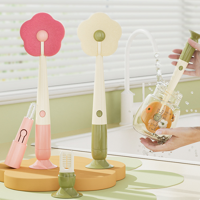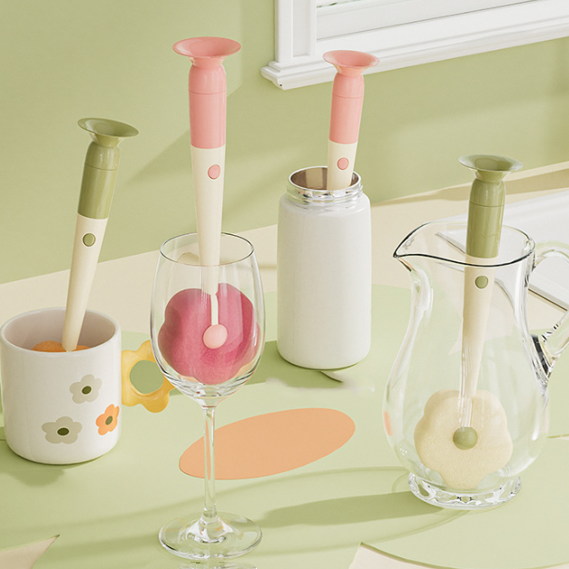 Brosse à long manche en forme de fleur avec ventouse trois en un : l'outil multifonctionnel miracle du monde du nettoyage