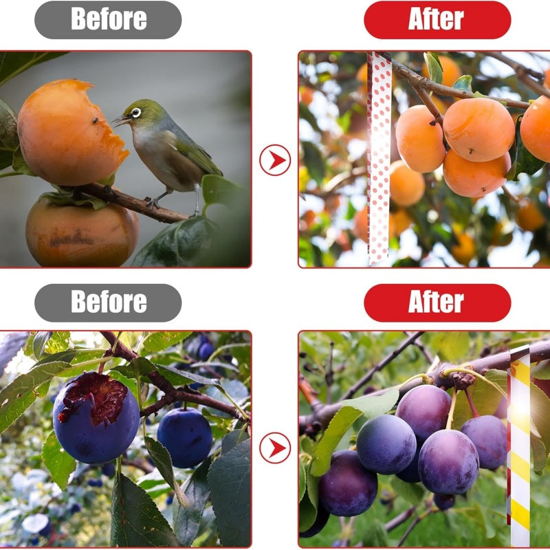 APPLICATIONS POLYVALENTES - Idéal pour une utilisation dans les jardins, les fermes, les patios et les vergers, ce ruban anti-oiseaux est parfait pour protéger les fruits, les légumes et les plantes ornementales contre les dommages.