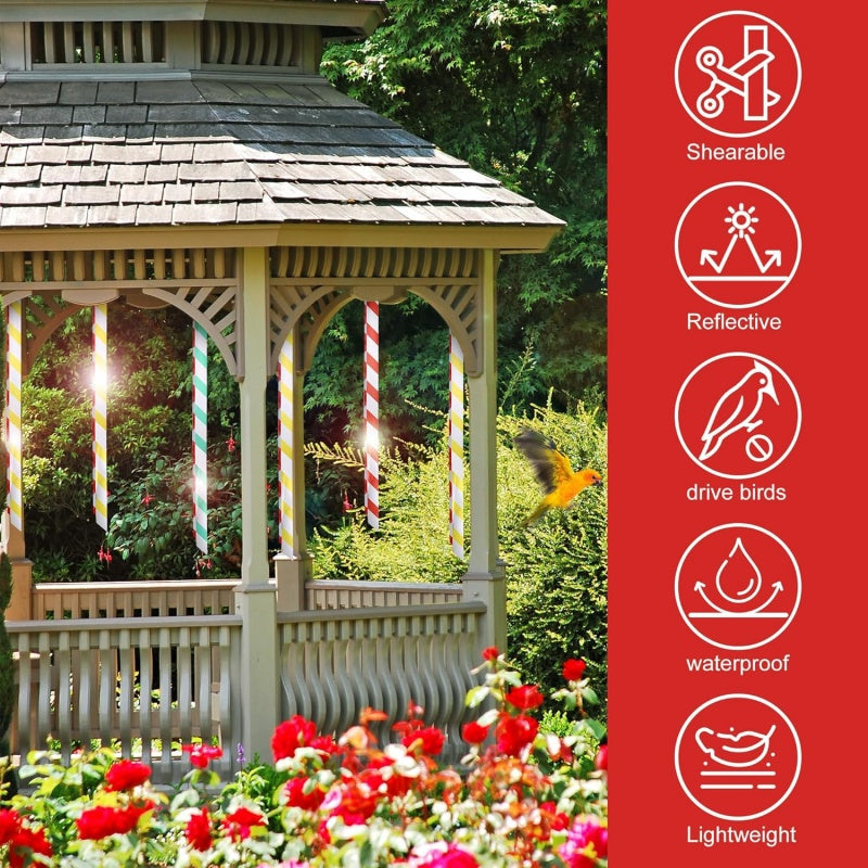DURABLE ET RÉSISTANT AUX INTEMPÉRIES - Fabriqué à partir de matériaux de haute qualité, ce ruban résiste aux intempéries, assurant une performance durable et une protection contre les oiseaux en toutes saisons.
