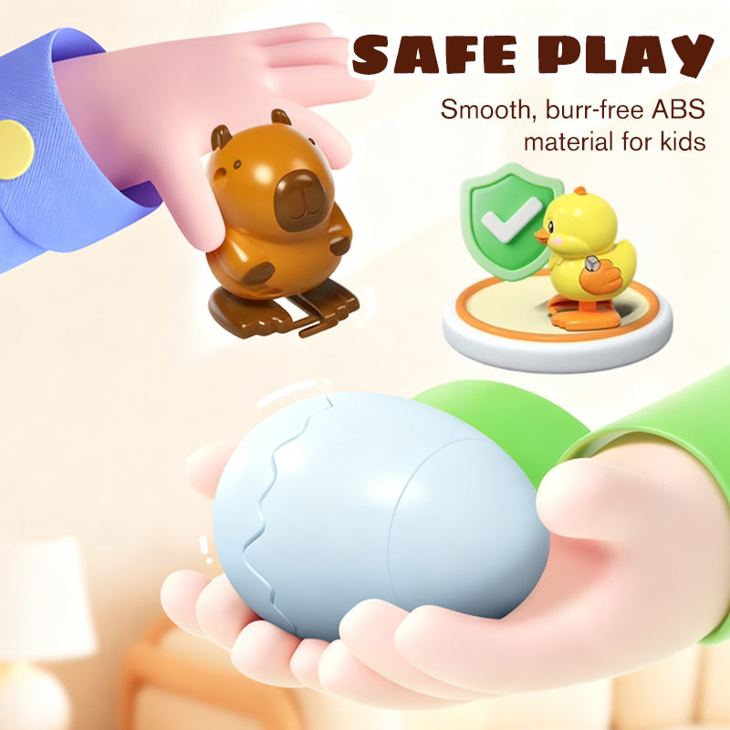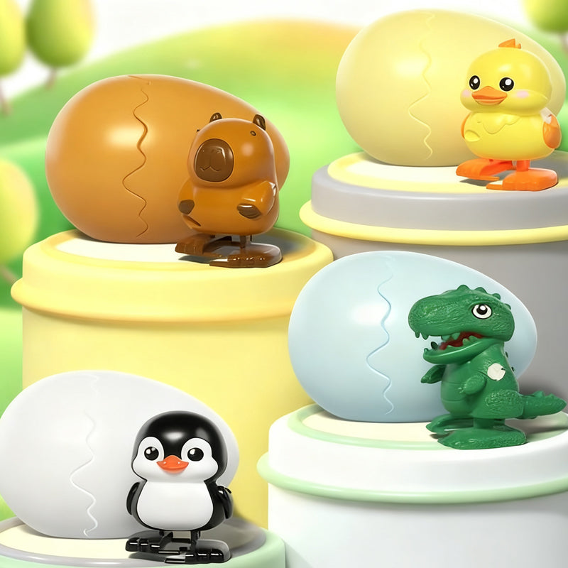 ANIMAUX À REMONTOIR QUI MARCHENT – Chaque œuf cache un petit animal unique et craquant doté d’un simple mécanisme à remontoir. Quelques tours suffisent pour activer son mouvement de marche, procurant un amusement facile sans piles. Ces mini-compagnons avancent en se balançant de gauche à droite, captivant les enfants et stimulant l’interaction.
