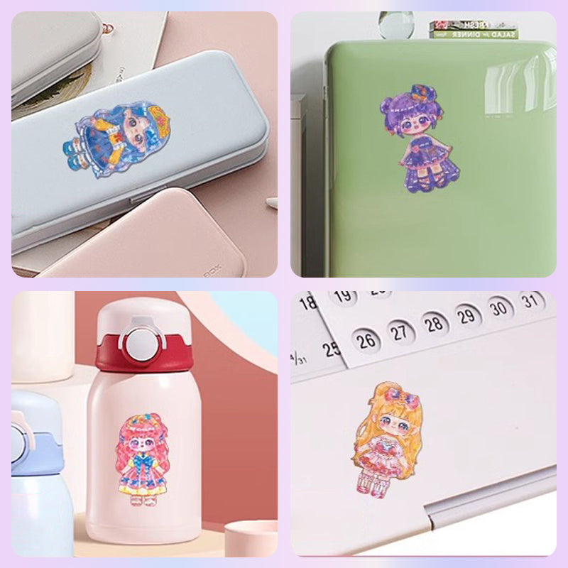 DESIGN LUMINEUX, VIF ET POLYVALENT : Les pièces magnétiques à revêtement laser aux couleurs vives et éclatantes offrent un attrait visuel. Ces autocollants polyvalents peuvent être fixés sur des surfaces comme les réfrigérateurs, les trousses ou les bouteilles thermos pour s'amuser partout.