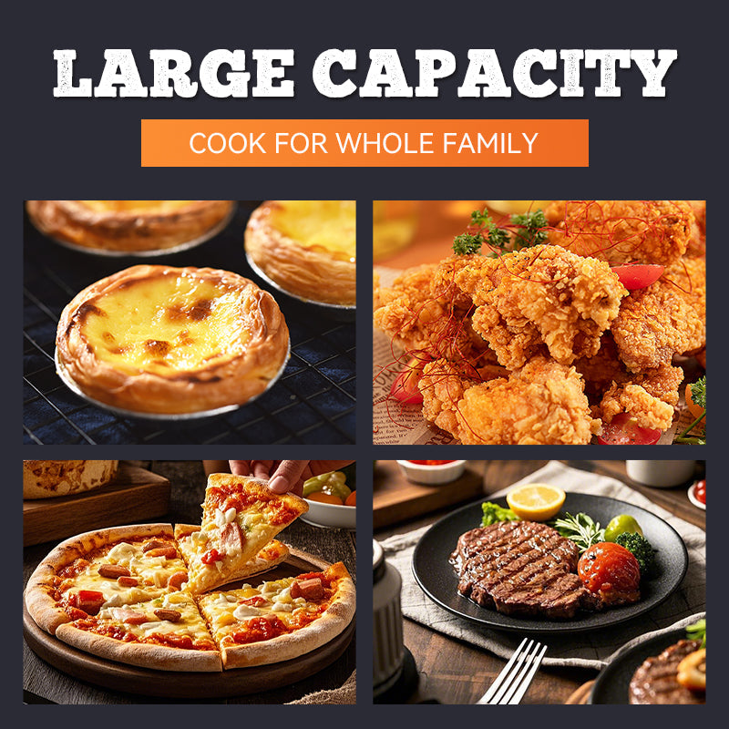 GRANDE CAPACITÉ ET POLYVALENCE - La friteuse à air chaud a une capacité de 15 litres, ce qui permet de cuire un poulet entier, plusieurs ailes de poulet, des frites et même une pizza de 18 cm en une seule fois. Elle peut répondre aux besoins des différents membres de la famille et à divers scénarios de cuisson.