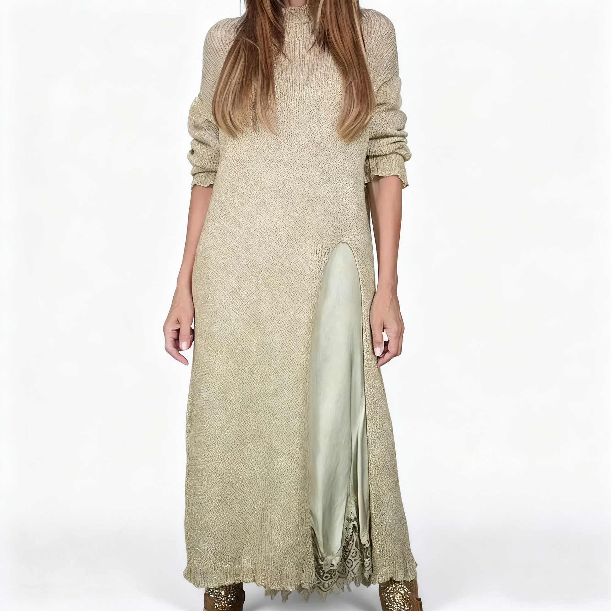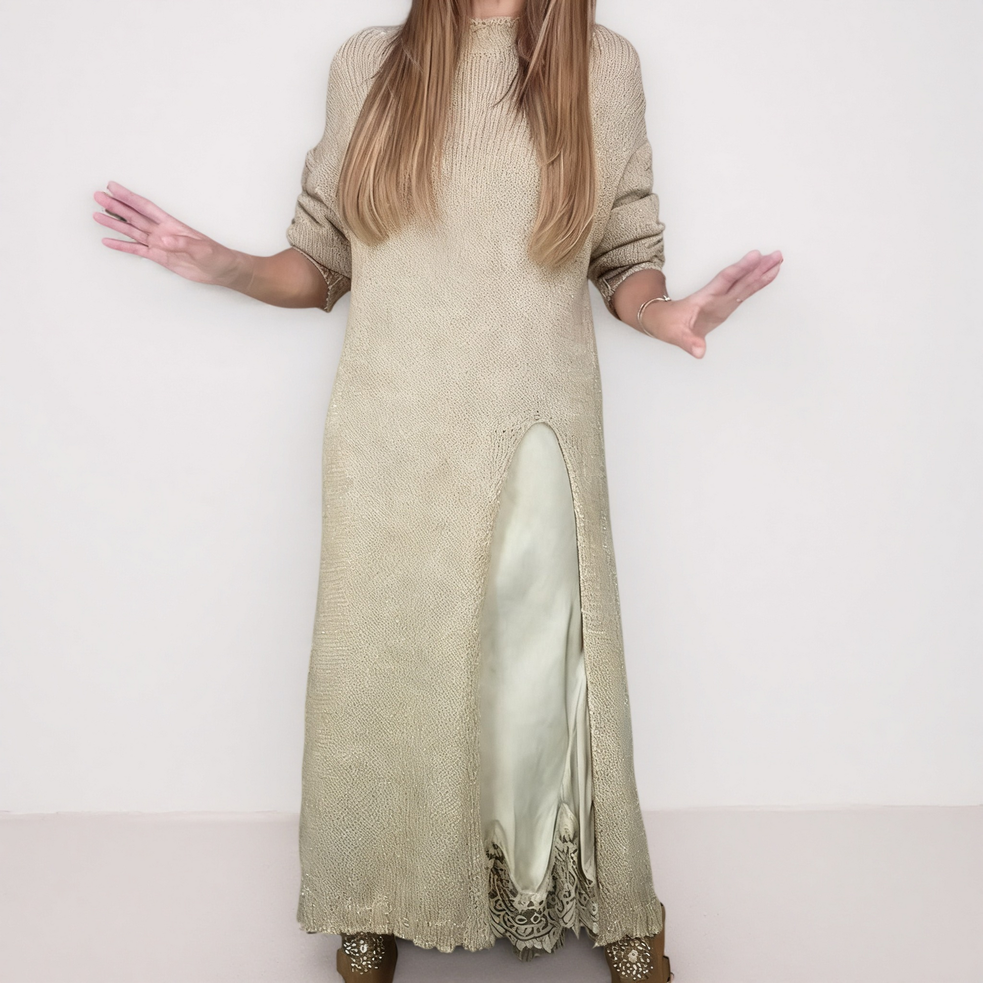 STYLE ÉLÉGANT À PLUSIEURS COUCHES : Adoptez un look chic et sophistiqué avec cet ensemble deux pièces soigneusement conçu. Le pull long et doux se superpose parfaitement à une robe fluide à bretelles spaghetti, créant ainsi un look harmonieux sans effort. Cette combinaison offre à la fois chaleur et style distinctif, parfaite pour la transition entre les saisons.