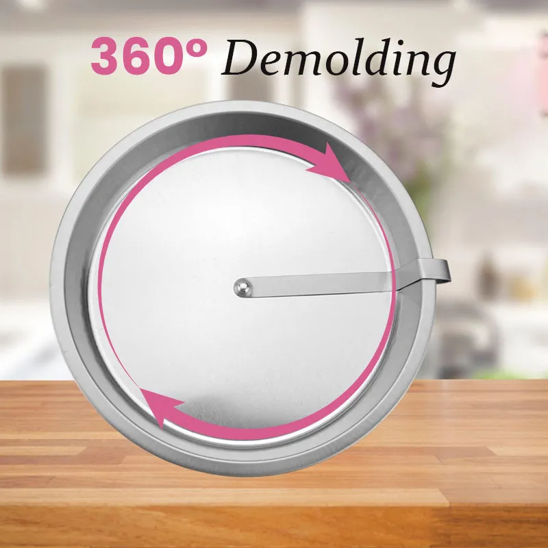 MÉCANISME DE DÉGAGEMENT RAPIDE - Dites adieu aux gâteaux cassés. Le levier unique permet de démouler vos créations sans effort et sans les abîmer, en préservant leur forme parfaite et en les rendant immédiatement prêtes à être décorées et servies.