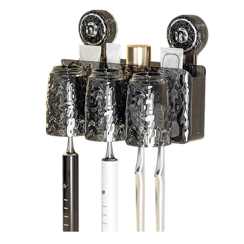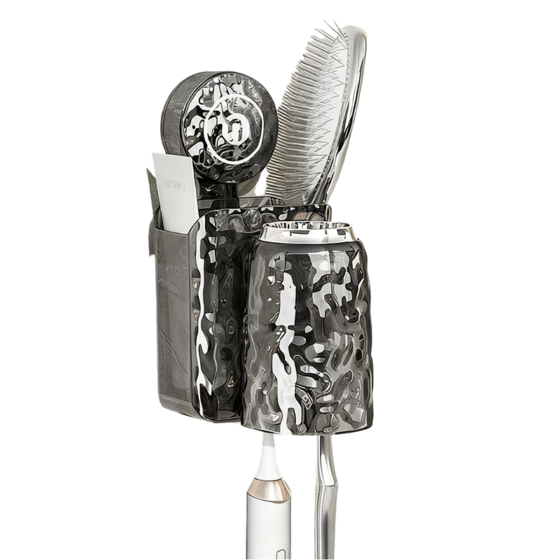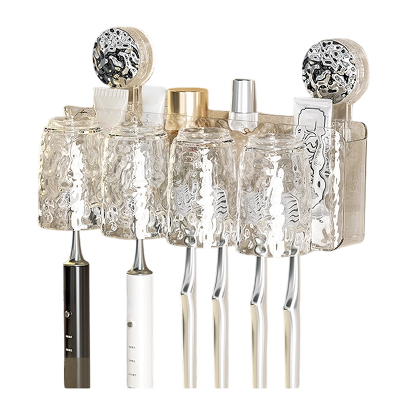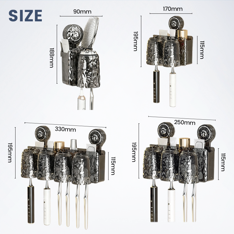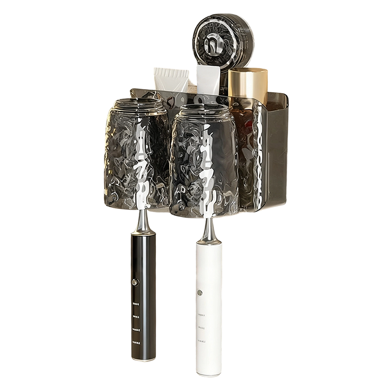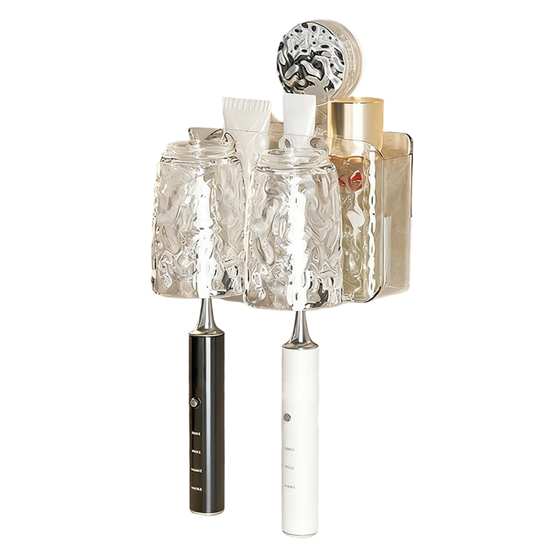 CONCEPTION MULTIFONCTIONNELLE - Ce support mural est doté de rainures en U à plusieurs fentes, combinant un porte-brosses à dents, un rangement et un gobelet. Il permet de gagner de la place tout en gardant les articles de toilette essentiels bien rangés et facilement accessibles.