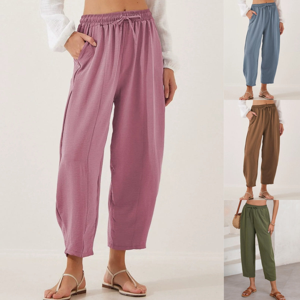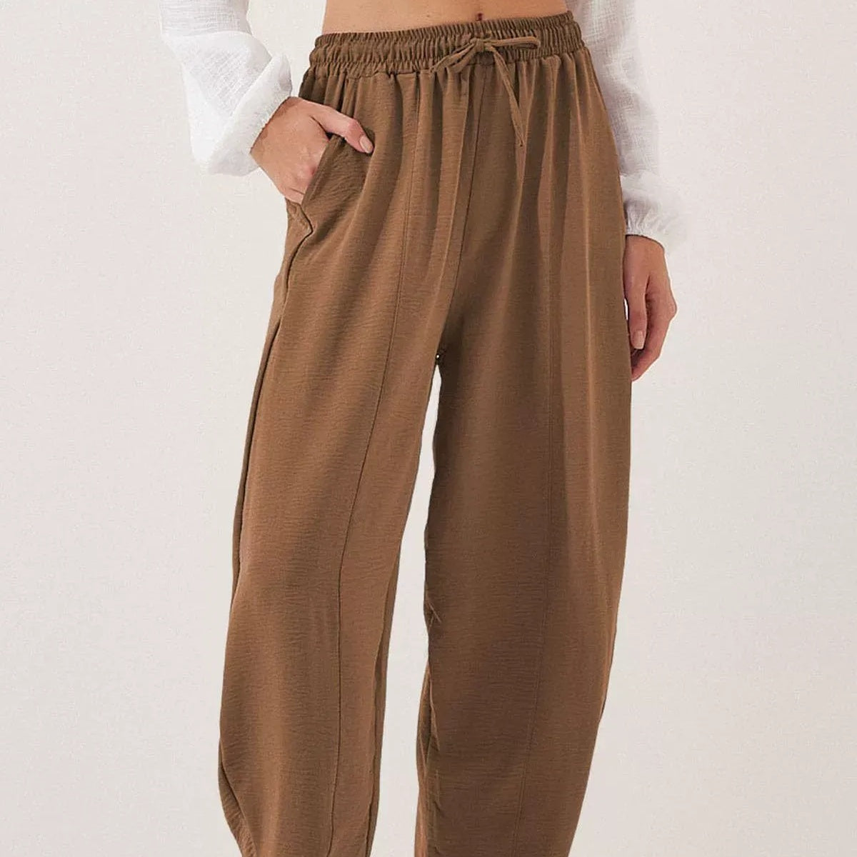 Pantalon décontracté à jambes larges et cordon de serrage pour femme