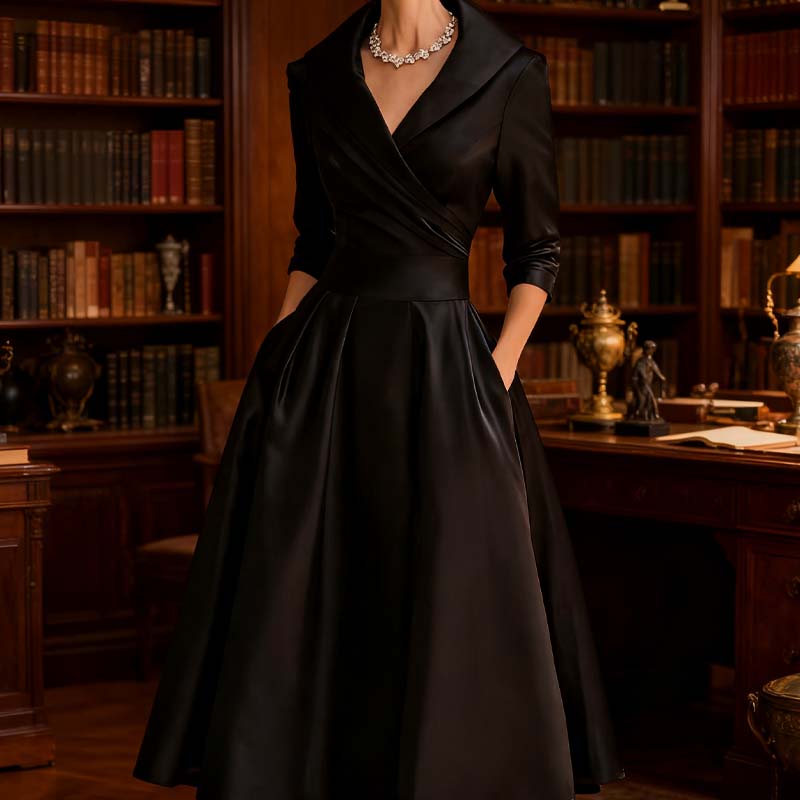 COL EN V ĂLĂGANT AVEC REVERS â Cette robe prĂ©sente un col en V raffinĂ© avec un revers classique, crĂ©ant un dĂ©colletĂ© flatteur qui allonge la silhouette. Parfaite pour les occasions dĂ©contractĂ©es comme formelles, elle apporte une touche soignĂ©e tout en mettant subtilement en valeur les clavicules. Le revers structurĂ© renforce lâĂ©lĂ©gance gĂ©nĂ©rale et sâaccorde aisĂ©ment avec diffĂ©rents accessoires.